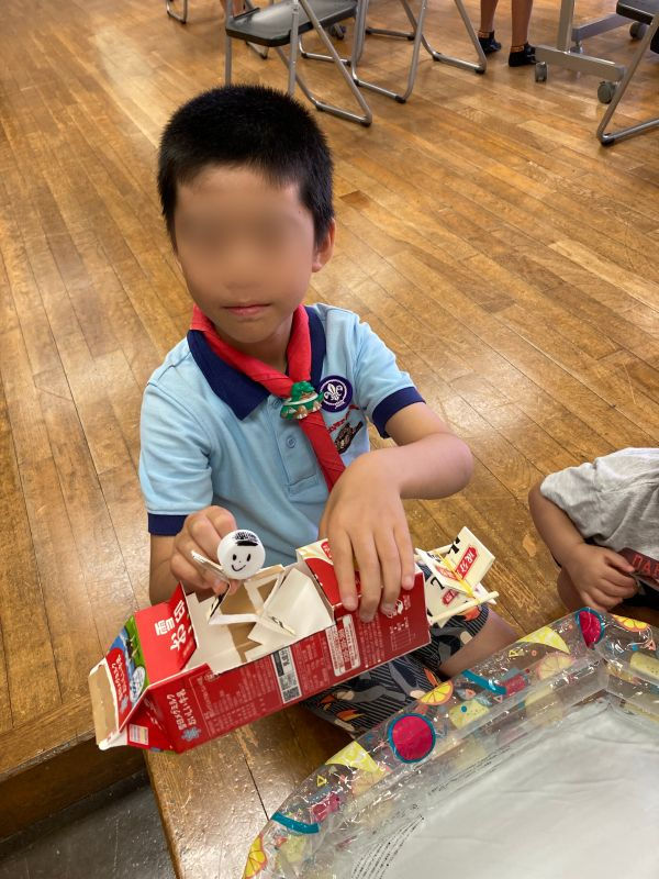 【ビーバー隊】身近な材料で船作り2025年8月3日読了時間: 1分夏のお楽しみといえば川遊び!ちょっとその前に楽しみを増やそう、と企画した船作り。川で自分の作った船でレースしよう。と工作にとりかかりました。素材はペットボトルと牛乳パック。自走する船の完成を目指して工夫をします。できたらミニプールで試運転♪最後はこだわりポイントをみんな発表します!同じ素材でも全く違うものななるのがとても素敵です☆上手く進まなくても改良を重ねる姿にとてもスカウトらしさを感じました。